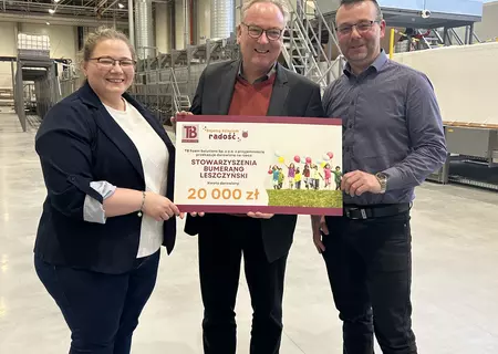 Równolegle do działań technicznych firma podsumowuje inicjatywy towarzyszące październikowej inauguracji, wśród których szczególne miejsce zajmuje akcja charytatywna zorganizowana podczas uroczystego otwarcia zakładu. Właściciel firmy Pan Thomas Busskamp zwrócił się wówczas do zaproszonych gości z prośbą, aby zamiast tradycyjnych, symbolicznych prezentów zdecydowali się na dobrowolne wpłaty pieniężne, które wspomogą działania dobroczynne oraz projekty społeczne prowadzone przez Grupę. Celem inicjatywy było nadanie wydarzeniu głębszego, społecznego wymiaru oraz realne wsparcie potrzebujących. Decyzja o nadaniu otwarciu zakładu takiego charakteru była świadomym wyrazem wartości, jakimi właściciel TB Foam Solutions Pan Thomas Busskamp kieruje się od początku swojej działalności. Odpowiedzialność społeczna, podobnie jak dbałość o środowisko naturalne i bezpieczeństwo, stanowi jeden z filarów strategii rozwoju Grupy.