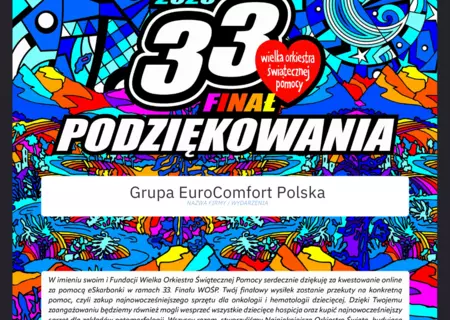 Nasi pracownicy również aktywnie zaangażowali się w tę inicjatywę, organizując różnorodne akcje i zbiórki. Corocznie wspieramy fundację Jurka Owsiaka i lokalne inicjatywy na rzecz Wielkiej Orkiestry Świątecznej Pomocy. Jesteśmy dumni, że możemy być częścią tak ważnej misji, jaką jest pomoc potrzebującym, a szczególnie dzieciom.